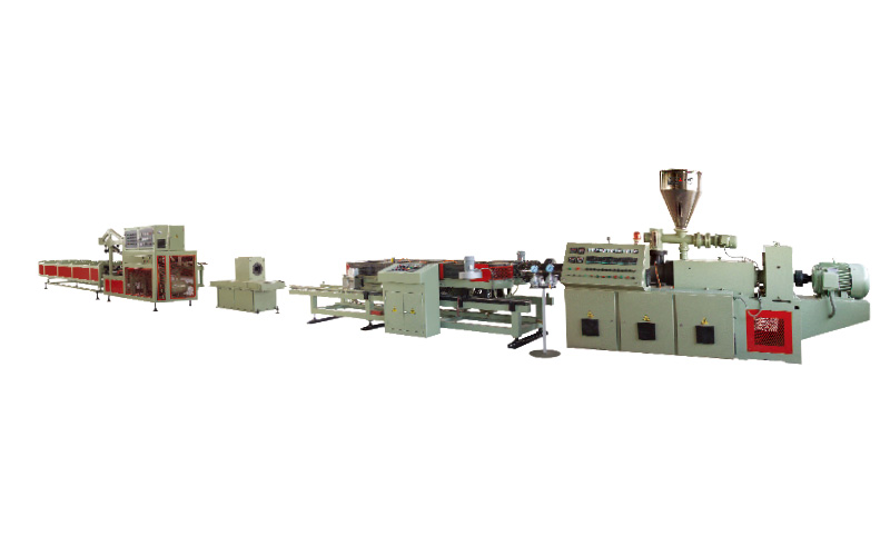 本機(jī)組由振動(dòng)篩、高速混合機(jī)及冷卻機(jī)、塑料粉末加料機(jī)、錐形雙螺桿塑料擠出機(jī),(單螺桿擠出機(jī))機(jī)頭、雙壁波紋管成形機(jī)、塑料管擴(kuò)口機(jī)、堆放架、冷水機(jī)、空氣壓縮機(jī)組成,主要用于生產(chǎn)PVC、PE等塑料雙壁波紋管及塑料單壁波紋管。